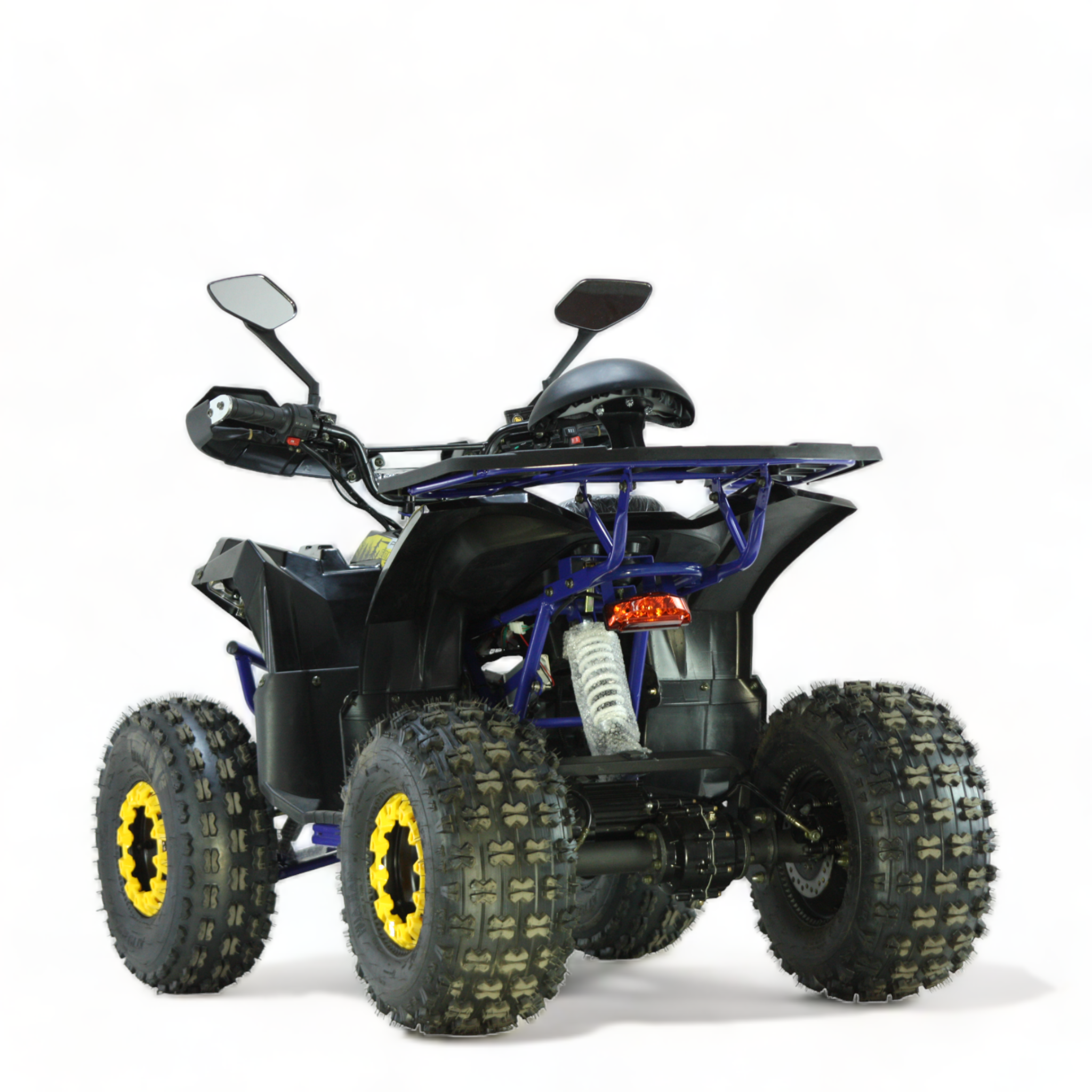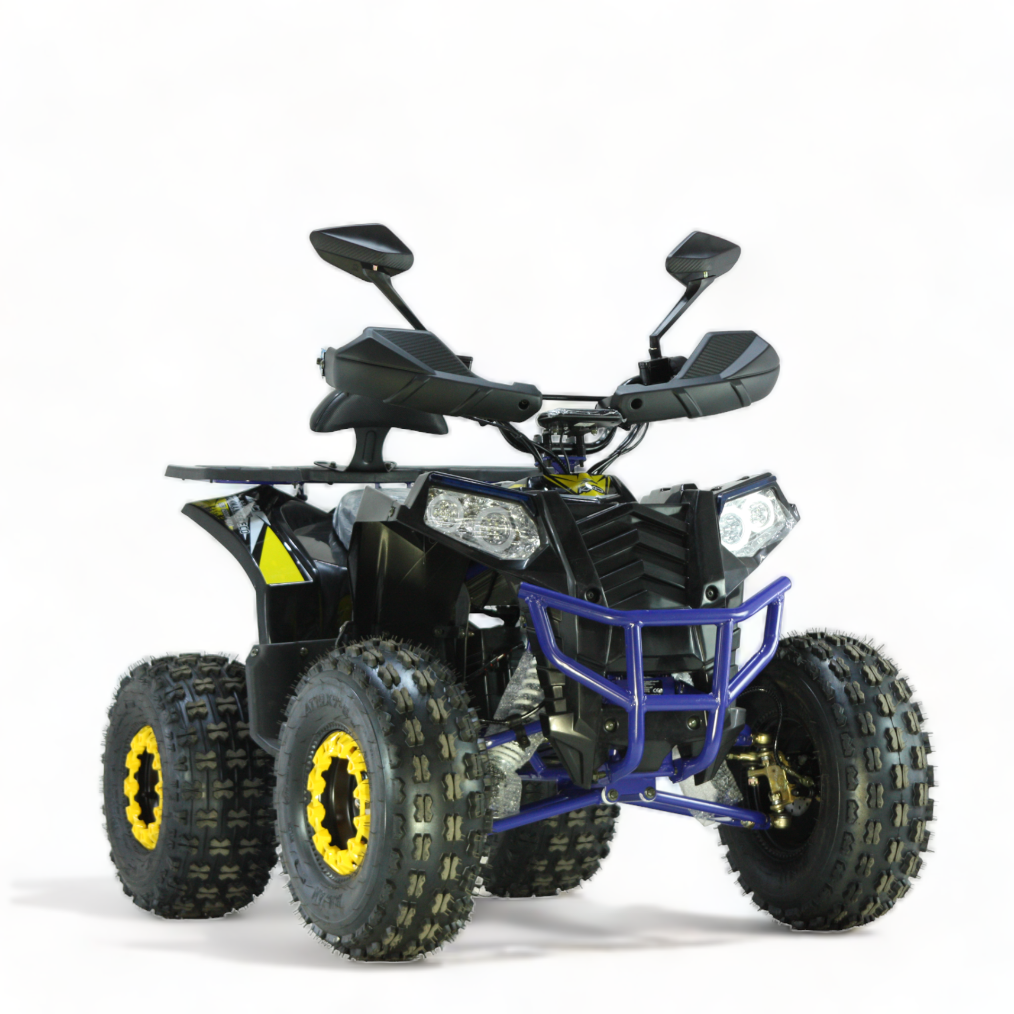 Dank des modernen 48V 20Ah Akkus ermöglicht das Quad eine Fahrzeit von bis zu 60 Minuten – ideal für ausgedehnte Offroad-Abenteuer. Das Safety Touch System mit Fußschalter, die 3-stufige Drosselung und das Zündschloss sorgen für maximale Sicherheit und Kontrolle, egal ob für Einsteiger oder erfahrene Fahrer.